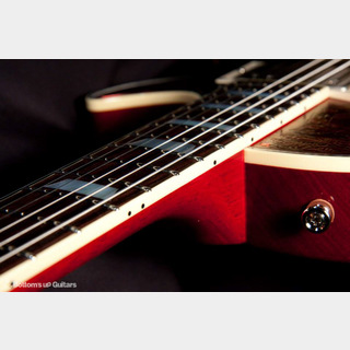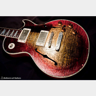 ホロウタイプのボディに、彫金アルミTOP、実に美しいチェリーサンバーストのカラーリングを纏った一本です。