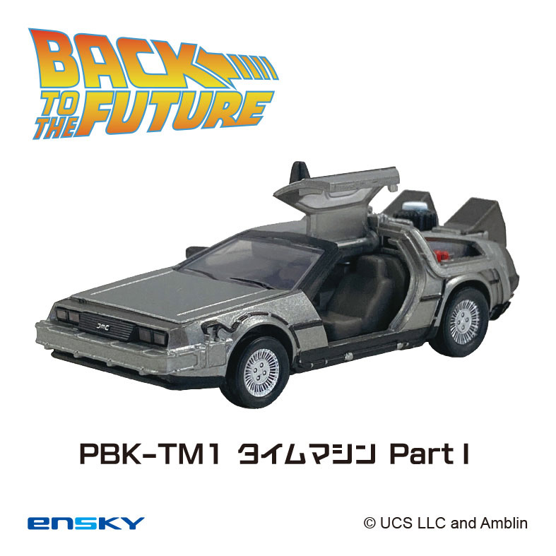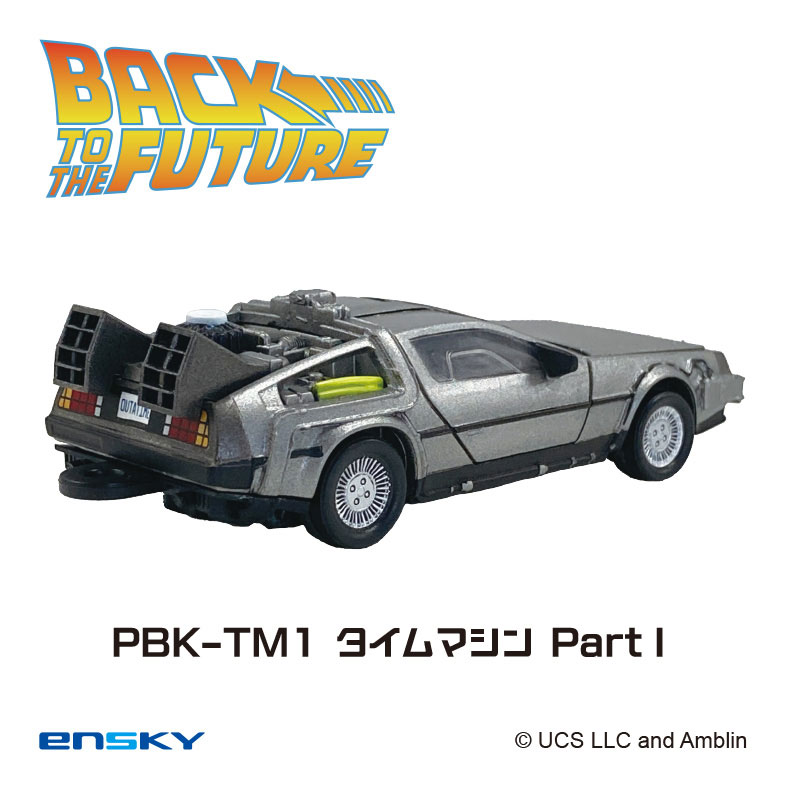 2025年12月に40周年を迎える『バック・トゥ・ザ・フューチャー』、映画本編に登場するタイムマシンを再現し、精密な作りにも関わらずプルバック走行ができる機構を組み込みました。このサイズでも両側ともガルウイングドアは開閉可能にし、内装も機器類を再現しています。リアにはフック穴を設けていますので、付属のキーホルダーをつけて持ち歩くこともできます。飾って楽しめるようにパッケージの内部をジオラマのような背景に仕上げています。
