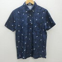G■沖縄物語/オキナワモノガタリ 半袖オープンカラーシャツ/コットン【L】紺/men's/57【中古】■