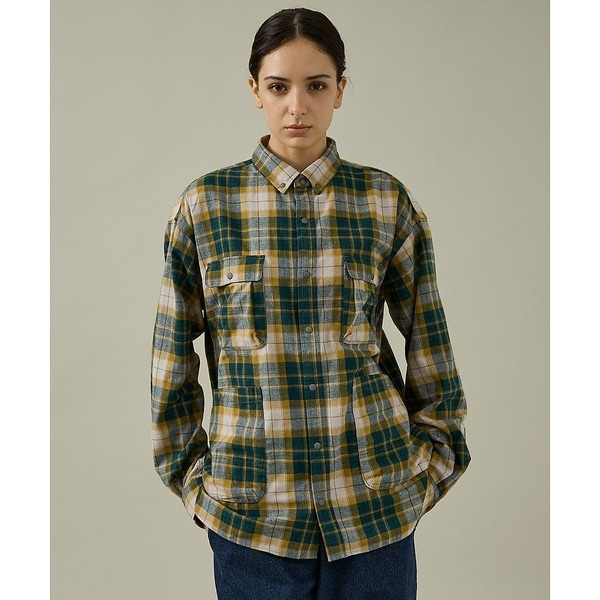 胸ポケットに加え、腰回りにも大きめのポケットを配置することで、アウトドアシーンやタウンユースにも活躍します。襟元はボタンダウン仕様で、カジュアルながらもきちんと感を演出。