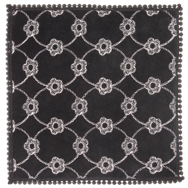 前面に刺繍が施されたレーシーなハンカチです。縁にはケミカルレースをあしらい、上品な一枚に仕上げました。