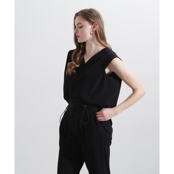 バックボタンブラウス/38/ポリエステル/BLK/031-5110406