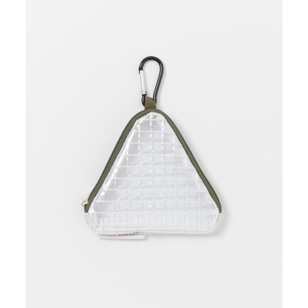 カラビナ付きの三角形型ポーチは、好きなものを入れてカバンに付けたりショルダーストラップに付けたりとマルチユースに使用可能。中身が見えるクリア仕様なので好きなものを見せながら使えます。
