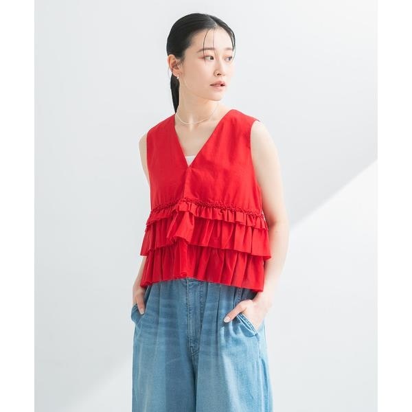 フリルが目を惹く着映えブラウス。