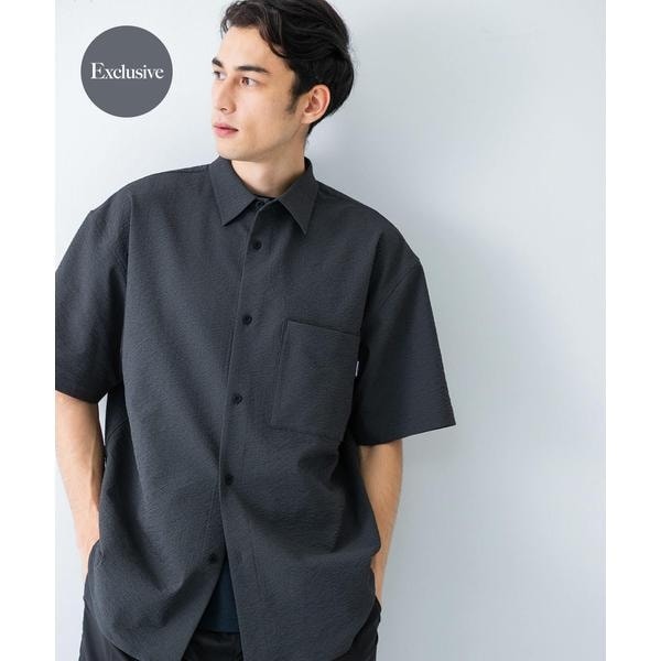 シアサッカー素材を使用し、ストレッチ・速乾・UVカット機能を備えた別注シャツ。
