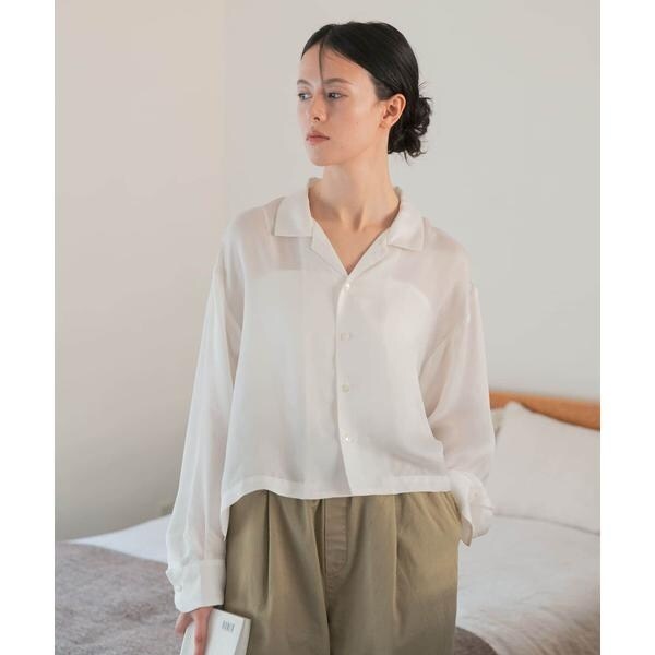 キュプラ100%のサテン素材でお作りしたシャツは、生地に洗い加工を施すことで洗練された大人の女性らしさを引き出しつつ、デイリーにも使いやすいデザインに仕上げました。