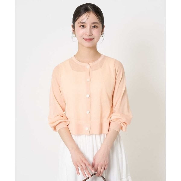 ショート丈のニットカーデはシアーな透け感がトレンド感◎。ゆったりとした身幅とボリュームスリーブがこなれ感のある着こなしに。カーディガンですが、釦を閉めてプルオーバーのように着こなしても素敵です。