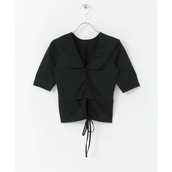 コンパクトなサイズ感なので、ワイドパンツやフレアパンツなど、ボリュームのあるボトムとの合わせがおすすめ。また、タイトスカートと合わせてリーンシルエットに仕上げるのも◎。あき具合を調節できるので、しっかりしぼって今年らしく肌見せするのがおすすです!ショート丈なのでハイウエストボトムに合わせるとスタイルアップ効果も♪。もちろん普通のボトム合わせてヘルシーにお腹を出す海外ファッションっぽいスタイリングも!チューブトップスをインナーで合わせたり、柄もののシアートップスを合わせてもかわいく決まると思います。いろんなインナーに合わせてレイヤードスタイリングを楽しんでください。