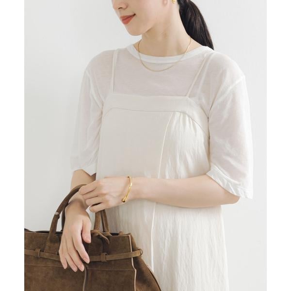 ドライタッチな肌触りの強撚コットンを使用。柔らかな風合いで、ビスチェやジャケットなどのインナーにぴったりの素材感です。