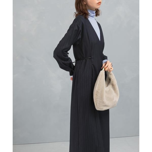 ベルトでウエストマークすることで、バランスの取れたスタイリングを生み出すワンピース。付属のレザーライクなベルトをウエスト部分の穴に通し、前後アレンジが可能なデザインです。程良いストレートシルエットにVネック仕様のため、お顔周りをスッキリとした印象に。デイリーだけでなく通勤着としても活躍する、MOCHAとSTRIPEの2色展開でご用意しました。ハイネックカットソーやリブニットとレイヤードした、きちんと感のあるスタイリングもお勧め。