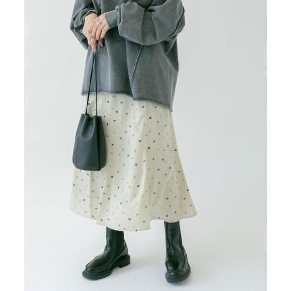 定番人気のドット柄×レトロな雰囲気のフラワー柄のバランスが可愛いスカート。動く度に揺れるマーメイドシルエットは大人っぽさを引き上げてくれます。ウエスト周りがすっきりとしたデザインで、広がり過ぎないのも嬉しいですね。ゆったりめのニットのみならず、ワンピースもぜひチェックしてみて。