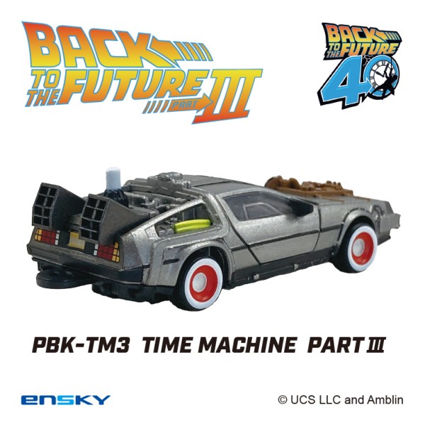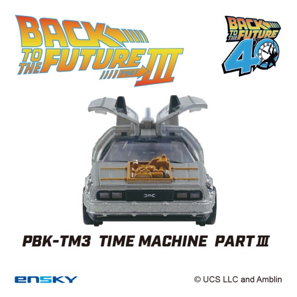 12月に40周年を迎える『バック・トゥ・ザ・フューチャー』、映画本編に登場するタイムマシンを4種とも再現し、精密な作りにも関わらずプルバック走行ができる機構を組み込みました。