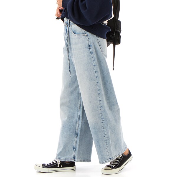 たっぷりと幅をとってボリュームを出したワイドジーンズ。股上の深いハイライズ仕様で、腰ばきにも対応します。付属のナローベルトが、タックインやクロップドトップと合わせた際のアクセントに。しっかりと洗いをかけることで生まれる、長年愛用しているようなフェードカラーにもこだわりました。