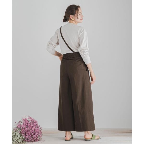 ラップ風のサスツキワイドパンツが登場。2WAY仕様でサスつきでも、シンプルにサスなしでもベーシックに着用いただけます。ウエスト周りはすっきりとしたデザインに仕立てているのでスタイルアップも狙えるアイテムです。コンパクトなニットや、カットソーなどバリエーション豊富にスタイリングを楽しんで◎
