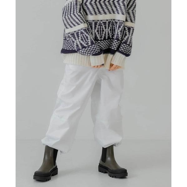 名前の通り、ワークテイストをたくさん盛り込んだ着こなしに抜け感をプラスしてくれるパンツ。薄手の綿生地に樹脂コーティングを施しハリ感を持たせました。裾はドローコード仕様となっており気分によって変えていただけます。ニットと相性抜群なアイテムです。