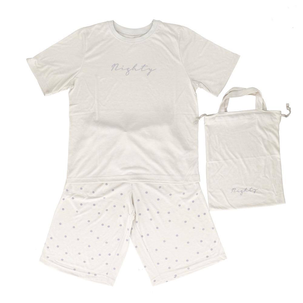 【商品名】 巾着付き半袖ロゴ上下セット ルームウエア