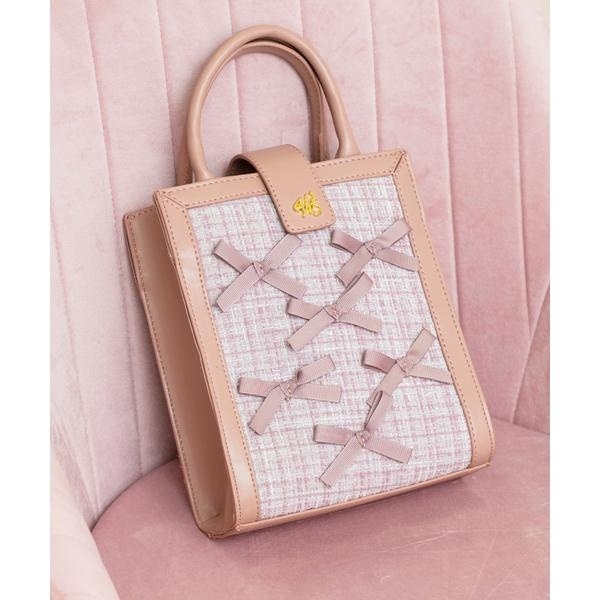 ふんだんにあしらったリボンがキュートな2Wayスクエアバッグ【Design/Styling】・夏に好評だったリボンバッグが秋冬Verになって新登場です♪・独特な風合いが特徴のツイード素材に、上品なグログランリボンを散りばめました。・ショルダーストラップは付け外しができるので、ハンドタイプとショルダータイプの2wayでお楽しみ頂けます。・フロントのベルトにはWILLSELECTIONロゴのプレートをトッピング♪・内側にはオープンポケット付きで、鍵や小物の収納に活躍してくれます!・ホワイト、ピンク、ブラックの3色展開となります。