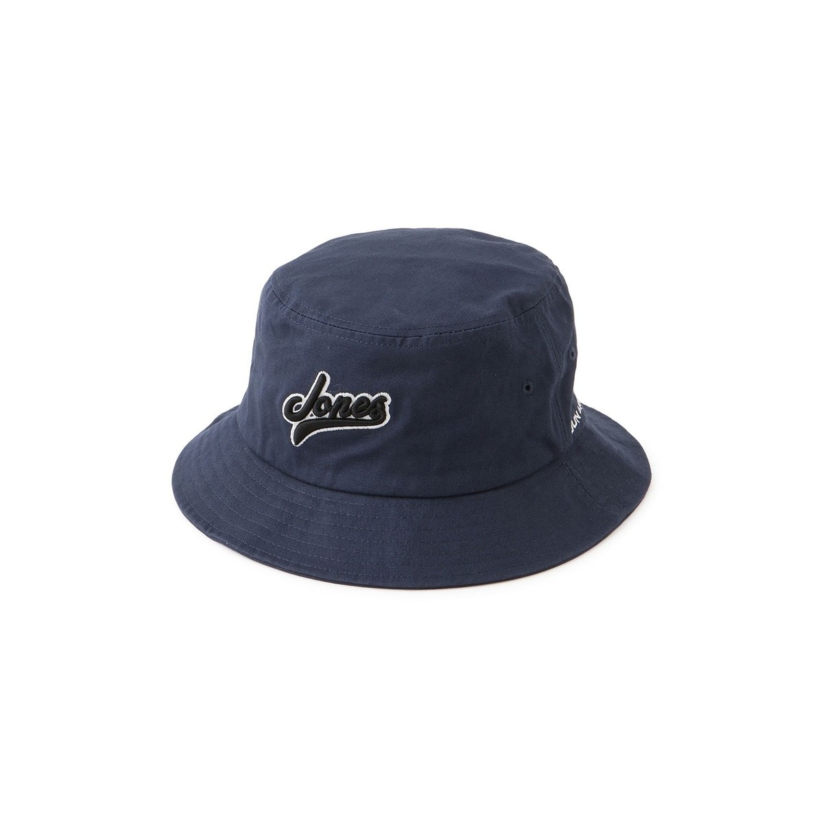 フロントにJONESの立体ロゴ刺繍を配した、シンプルながらもシルエットにこだわったバケットハット。
