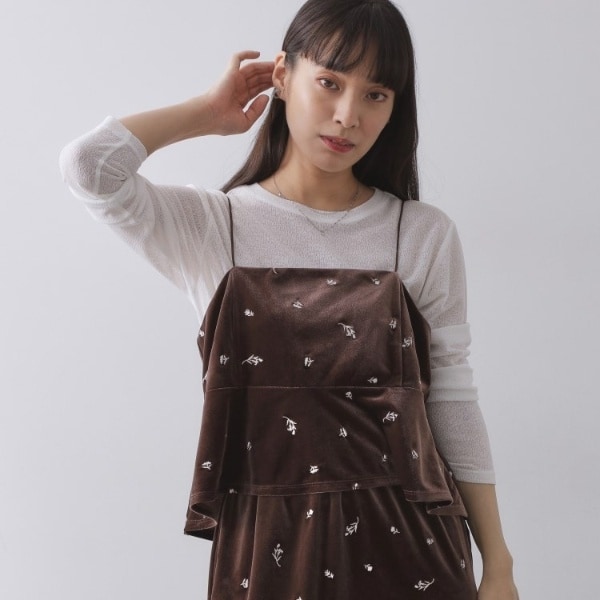・上品な光沢と秋を感じるカラー使いが素敵なベロア素材のキャミソールです。