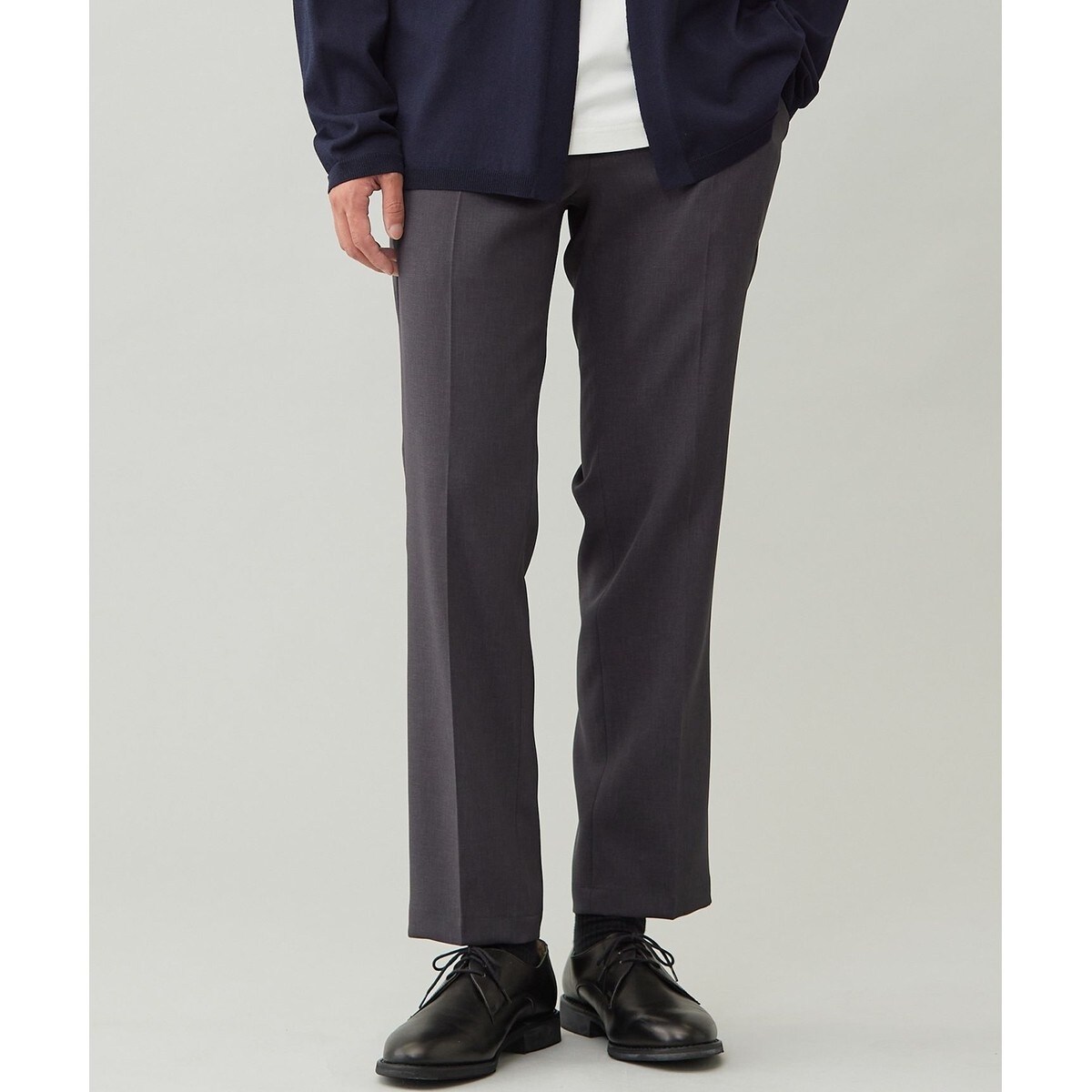 ■素材説明・ウール見えの上品な見た目と高い機能性を併せ持ったシーズンレス素材・抜群のストレッチ性でストレスフリーな着心地・吸水速乾機能付き・着用シワが気になりにくい・肌面に平滑性の高い糸を使用し、チクチク感がないさらっとしたタッチを実現・洗濯機で丸洗い可能でお手入れ簡単・適度なハリ感が美しいシルエットを演出