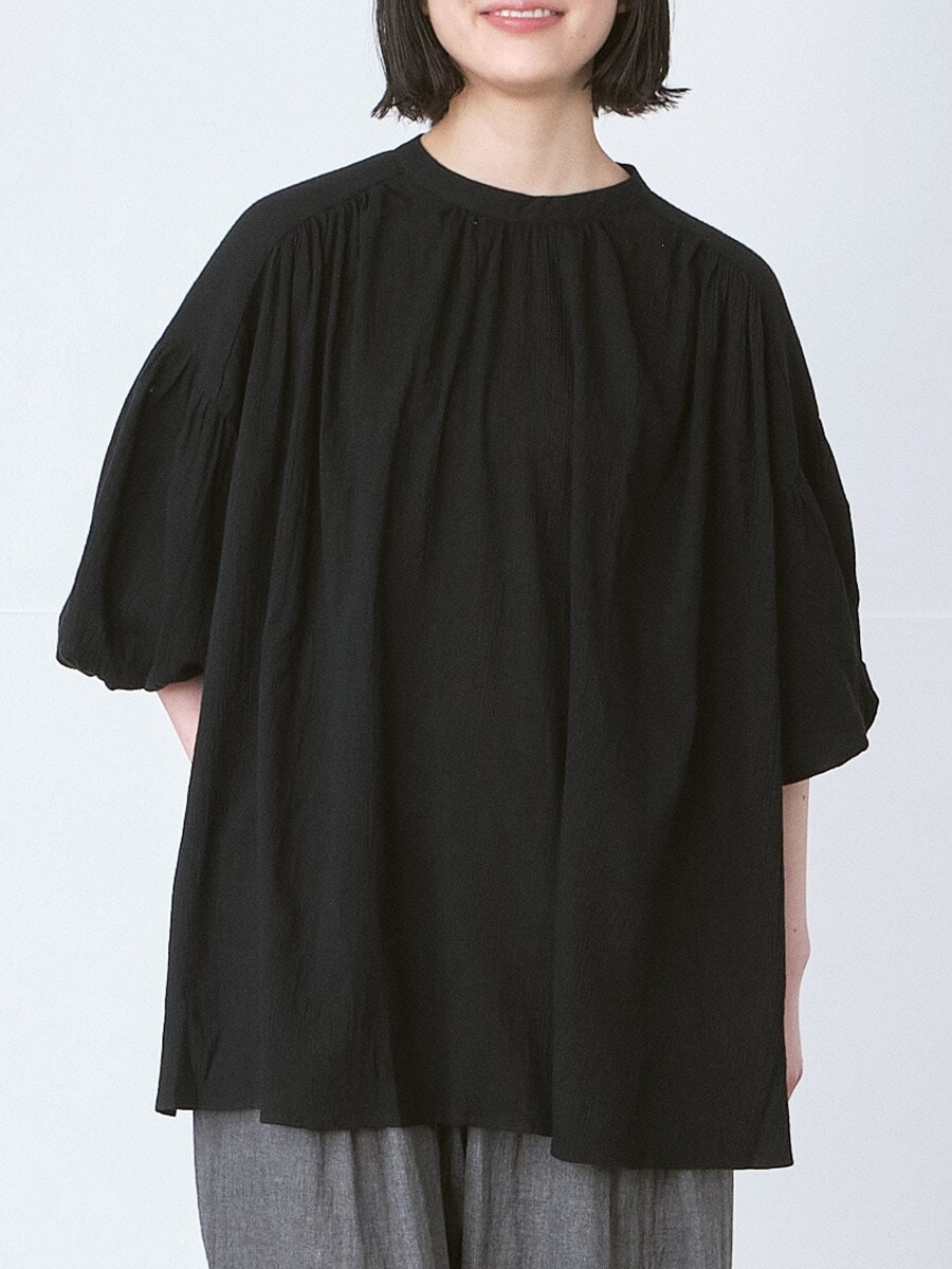 キーネックブラウス 綿ジョーゼット 2色展開 F フリーサイズ