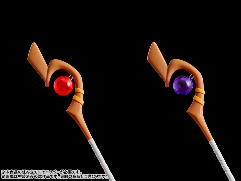 ・「めぐみんの杖」には、爆裂魔法発動時を再現可能な交換用の「マナタイト(紫)」パーツが付属。