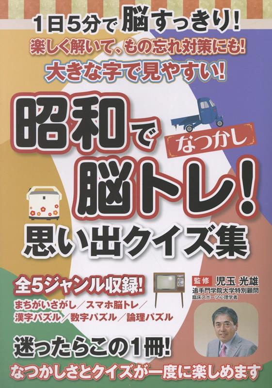 ■ことばで脳トレことわざ穴埋めクイズ(例:「情けは人の〇ならず」)四字熟語クロスワードしりとりパズル(漢字・ひらがな)昭和の流行語・歌詞クイズ★読む楽しさ+昔を思い出す懐かしさでウケやすい。■数字で脳トレ大きな数字迷路やさしい数独・ナンプレ買い物計算クイズ(実生活の計算問題)並べ替え数字パズル(例:1から順に結ぶ)★「計算できる自分」を実感しやすい内容。■記憶力アップ写真記憶クイズ(1分見せて隠し、問題に答える)買い物リスト暗記ゲーム間違い探し(大きな絵で5〜7カ所程度)★シニアに人気の「間違い探し」は大判にすると喜ばれます。■生活に役立つ脳トレ料理手順並べ替えクイズ防災知識クイズ(非常袋の中身は?)健康知識パズル(血圧・睡眠の知識をクイズ化)★実用性があり、買った人が「勉強にもなる」と感じられる。■挑戦問題総合クロスワード(大きな1ページサイズ)難しめの記憶力テスト今日からの脳トレ習慣アドバイス