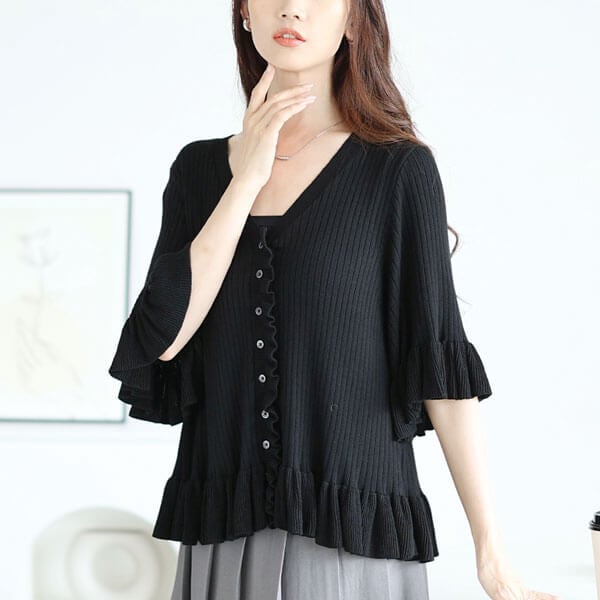 シアージャガードティアードチュニックブラウス&セミワイドパンツ セットアップ 上下セット