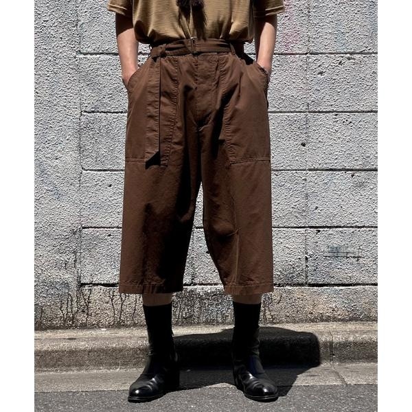 打ち込みの強い薄手の地の素材を使用した8分丈のパンツ。
