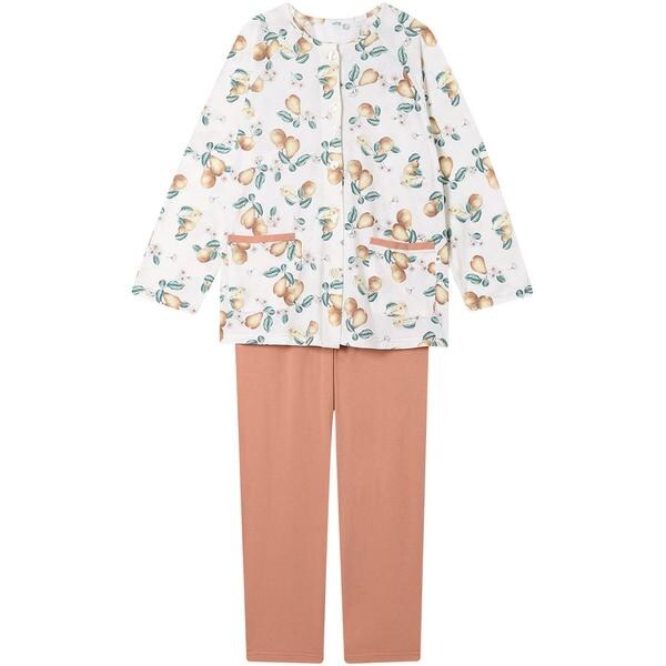 ・本体に、綿100%の天竺素材を使用・上品な油彩タッチのラ・フランス柄プリント・春や秋はもちろん、通年おすすめ・腕が上げやすく、動かしやすいラグランスリーブ・無地のボトムで、くつろぎ時間のルームウェアにもおすすめ※お洗濯は、必ず「取扱い表示」にしたがってください。