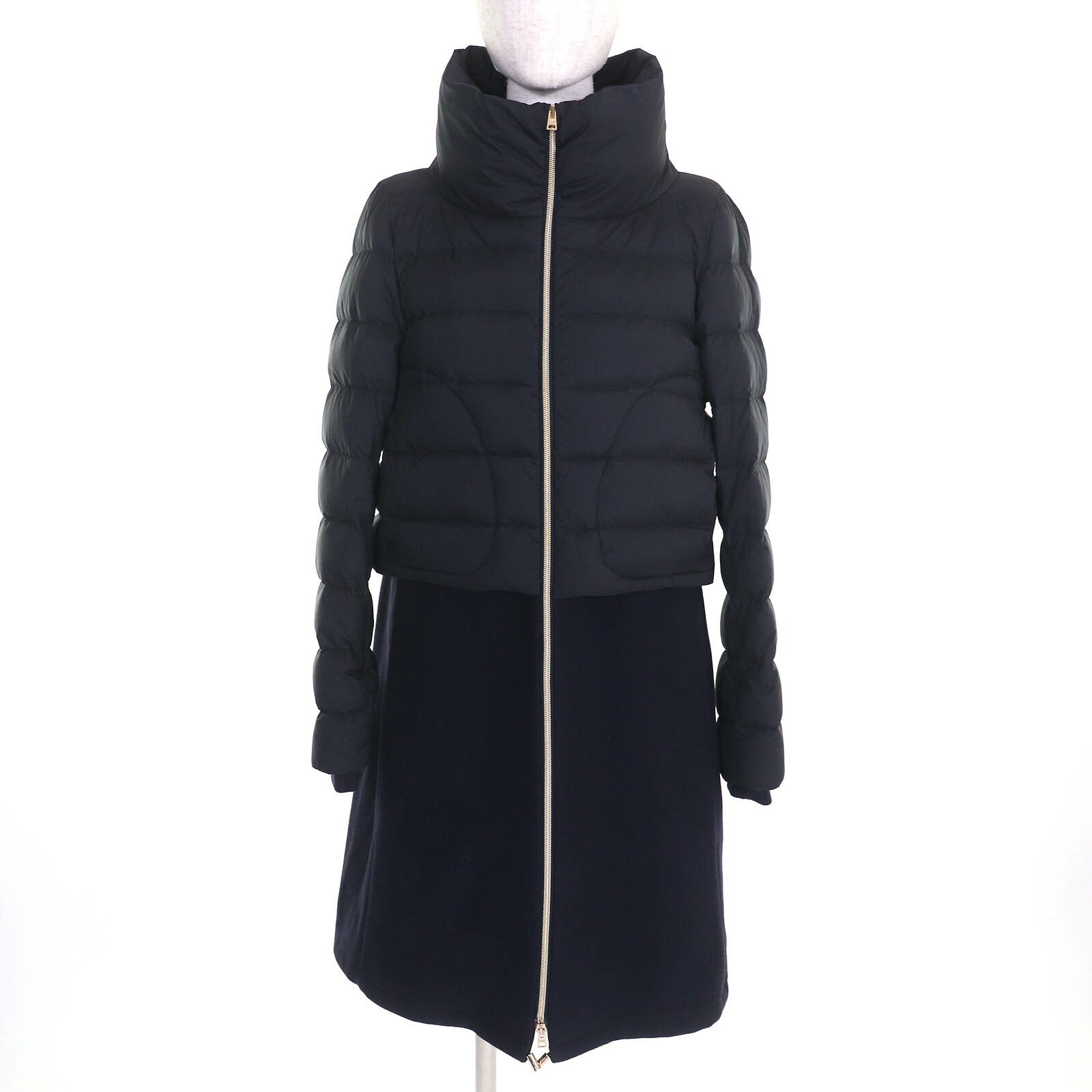 正規品 美品 HERNO ヘルノ ウール切り替えダウンコート 異素材 ネイビー ダークネイビー 紺 クリーニング済み カジュアル