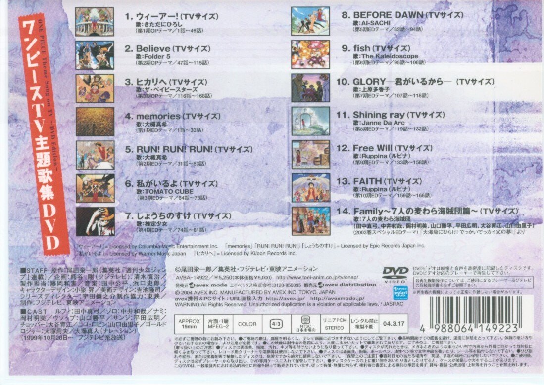 C105 ワンピースONE PIECE TV主題歌集DVD