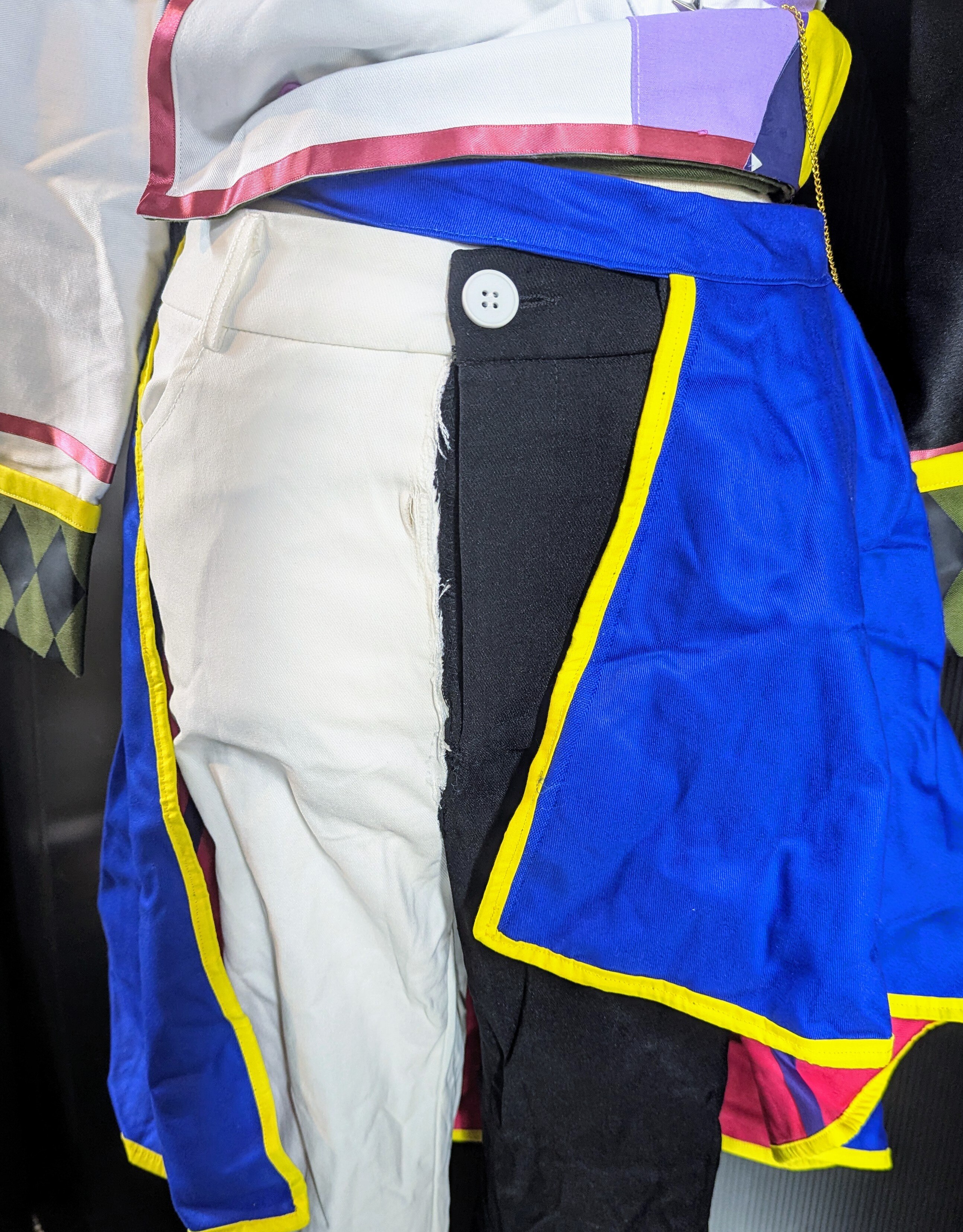 状態 : シャツ欠。リボン色移り有り。パンツイタミ。(状態:4) 製作 : 個人製 サイズ : 女性Lサイズ位(日本標準サイズ/サイズ詳細はお問い合わせ下さい) セット内容 : ジャケット、パンツ、腰巻、ネックリボン、手袋 ※セット内容以外の物は含まれません。