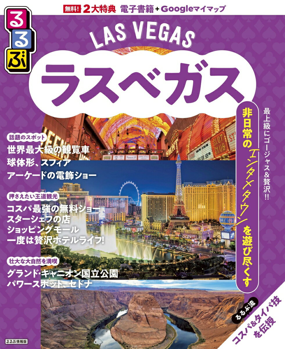 ◎スマホやタブレットで使える便利な電子書籍+Googleマイマップ付き◎大きくて見やすいサイズ(通常版/25.7×21cm)◎表紙がオシャレにリニューアル!非日常を体験できる最強エンタメシティの最新情報満載。ショーや映えスポットをはじめグルメ、ショッピング、ホテル情報も充実。<主な特集内容>【巻頭特集1】初めてだから楽しめる!ラスベガスの非日常体験 ・アミューズメント体験(世界最大級の観覧車の一つ、ハイローラー、フリーモント ストリート、ザ・ストラットからの展望体験)・ラスベガスならではの映えスポット(ラスベガスサイン、HERSHEY’S、パリス、足をのばしてセブン・マジック・マウンテンズ)・圧巻パフォーマンスのシルク・ドゥ・ソレイユ・無料ショーほか【巻頭特集2】 極上ダイニング・世界的スターシェフの憧れレストラン・エンタメテーマレストラン&バー・食べ放題バフェ【その他の特集】・ニュース&トピックス・高級ブランド〜庶民派ショップも揃う、ショッピング・ショーもグルメもお買い物もできる!極上ホテルリゾートワールド、ベラッジオ、ベネチアン、パラッツオほか30軒以上ものホテルを詳しく紹介・ラスベガスからひとあしのばしてグランドキャニオン国立公園、セドナetc.上記のほか、各エリアの名物グルメ、注目宿情報も満載です。【掲載エリア】 ラスベガス、グランド・キャニオン国立公園、セドナ●「るるぶ」は、「みる」「食べる」「遊ぶ」を中心におすすめエリアやスポットを徹底紹介した旅行ガイドブックです。国内・海外あわせて約200のラインナップを展開、2023年でブランド誕生50周年を迎えました!「るるぶ」の特徴はこちら・写真が多くてわかりやすい!・最新情報がたっぷり!・見やすい地図もついてくる!初めて訪れる方からリピーターまで、幅広い方々により旅行を楽しんでいただけるガイドブックです。