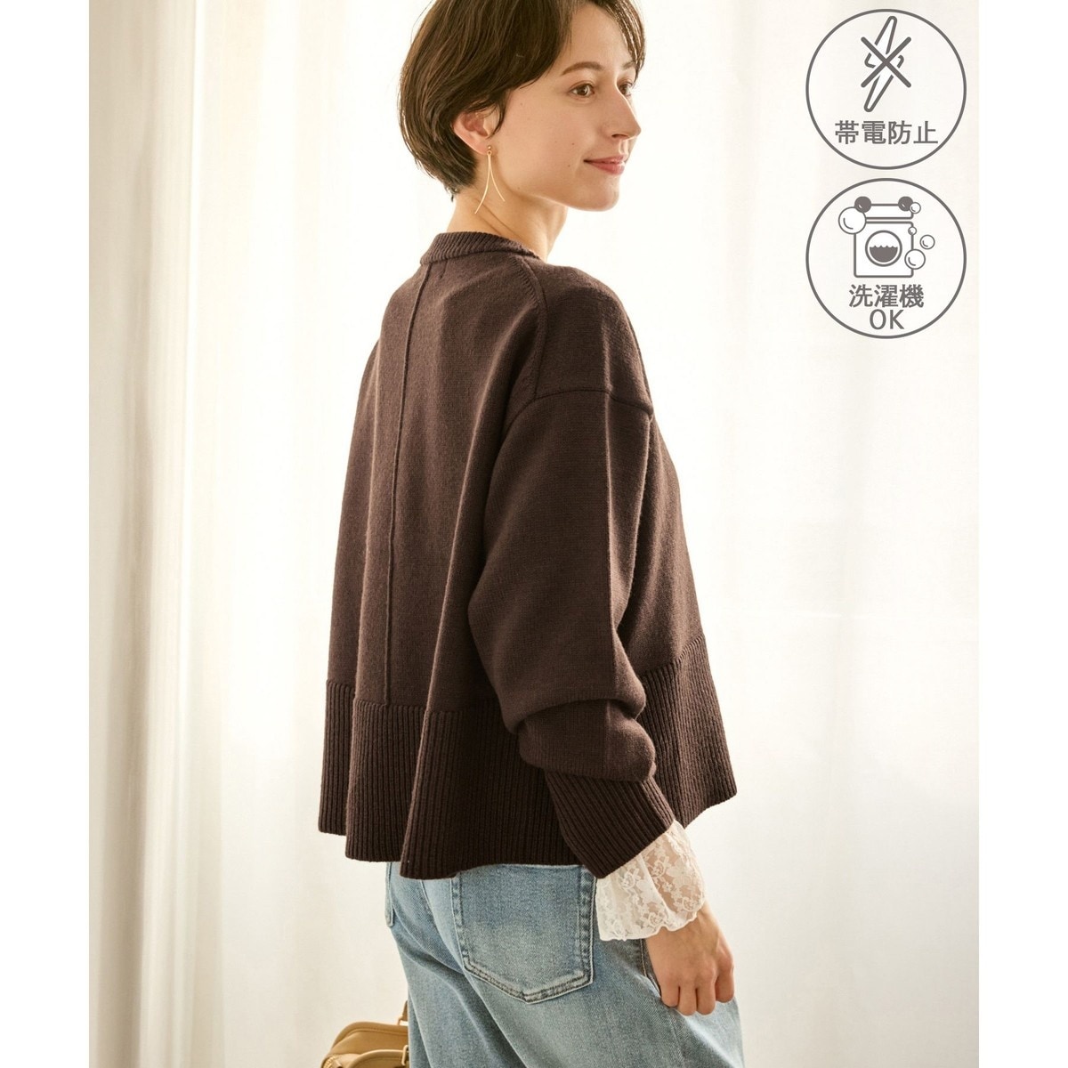 ・サイドスリットが効いているため、シャツやロングTシャツを中に着て裾や袖口、首元をのぞかせる定番の重ね着スタイルも着膨れせず、こなれた印象に。