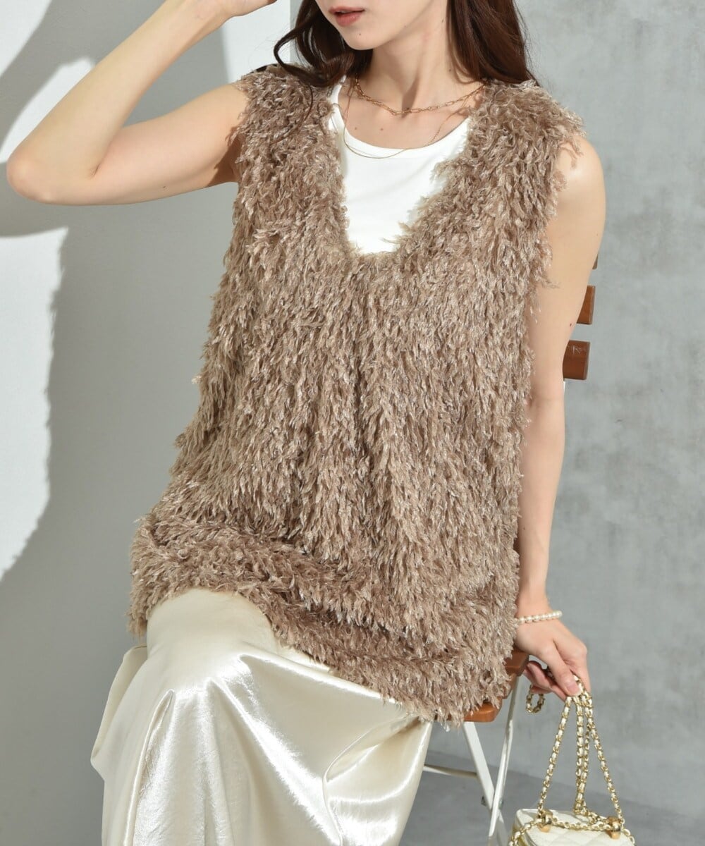 【actuel】ラメシャギーVネックベスト