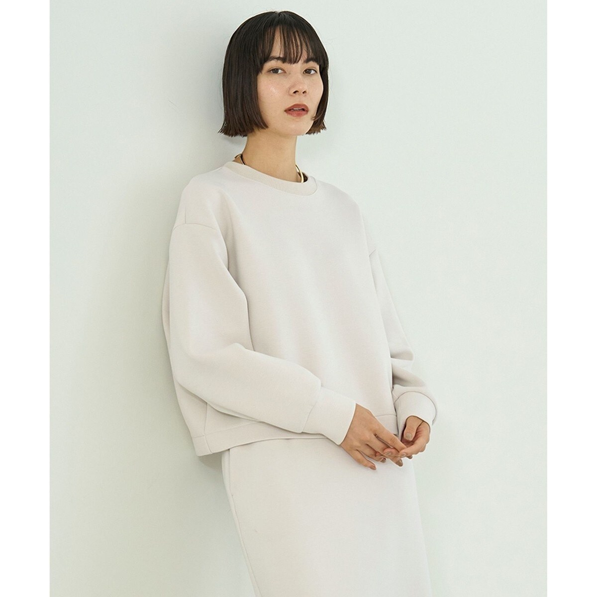 ■デザインワイドシルエットとボリューム感のあるお袖のバランスがフォルム感を引き立たせるクロップドトップス。着脱しやすく、アクセントにもなるメタルジップ付きです。その日のスタイルに合わせて前後着用の着こなしもお楽しみいただけます。同素材のIラインスカート(SKURCW0355)や、セミフレアスカート(SKURSW0358)とのセットアップコーデもおすすめです。