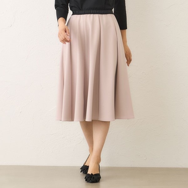 ウエストゴム仕様で快適な着心地を実現。複数のパネル切り替えが生み出す立体感と、素材の特性を活かした美しいドレープが魅力のスカートです。