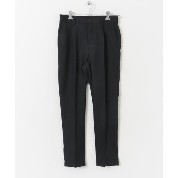 ウールライクなポリエステル100%の生地を使用したパンツ。