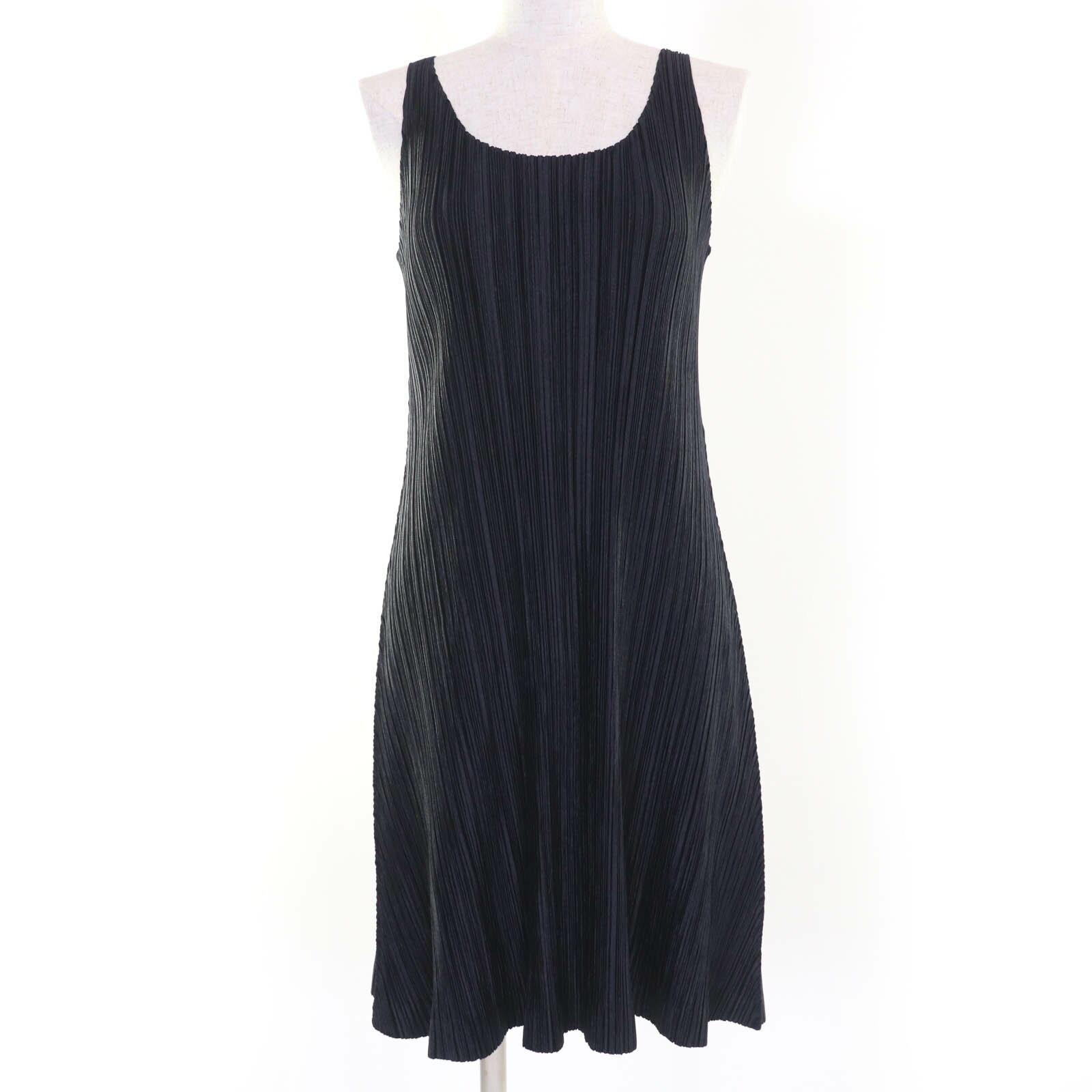 ☆極美品☆PLEATS PLEAS プリーツプリーズ イッセイミヤケE 膝丈ワンピース vネック ドレス ブラック