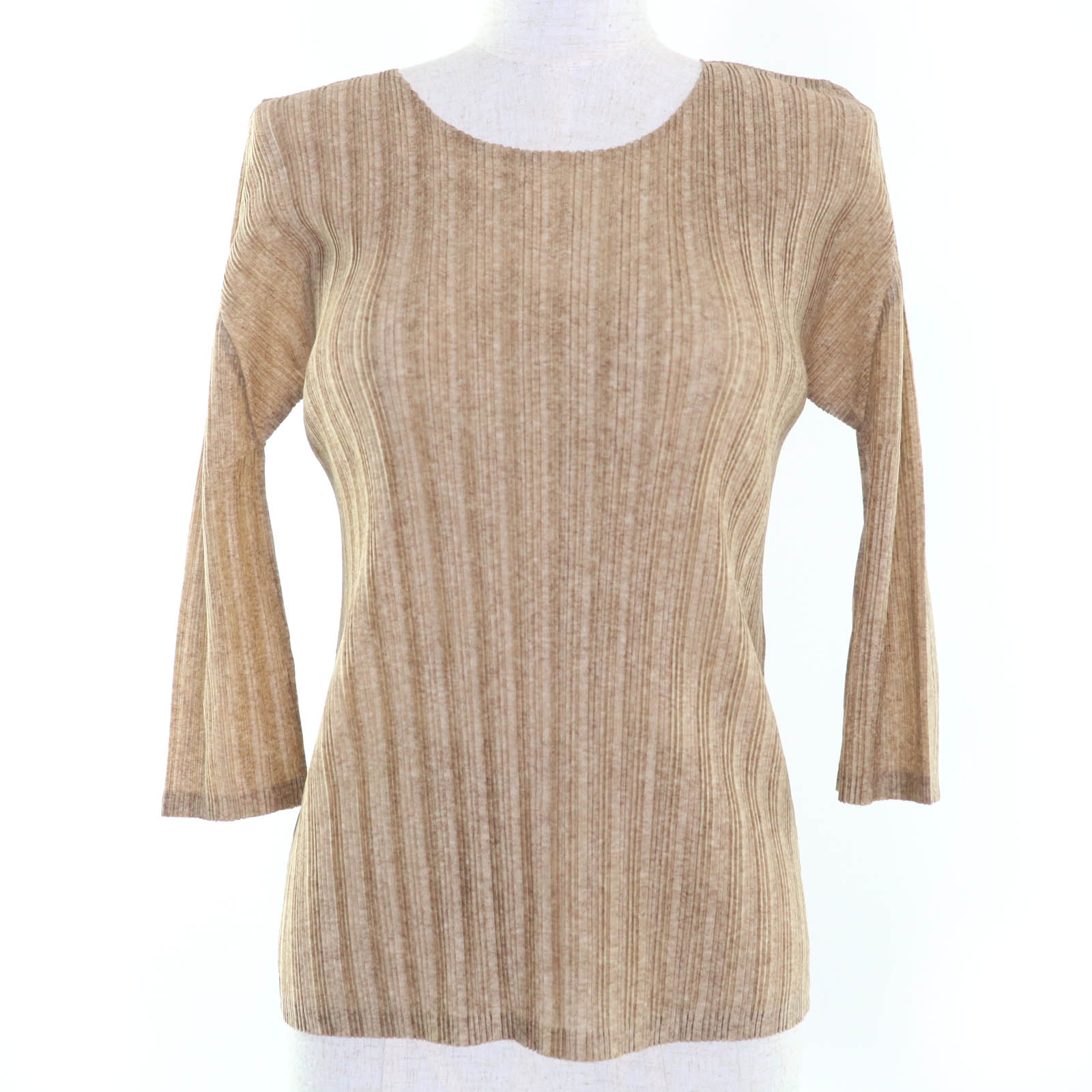 極美品△PLEATS PLEASE プリーツプリーズ イッセイミヤケ PP01-FK315 タートルネック 長袖 トップス ブラウン 3 日本製 正規品 レディース【中古】