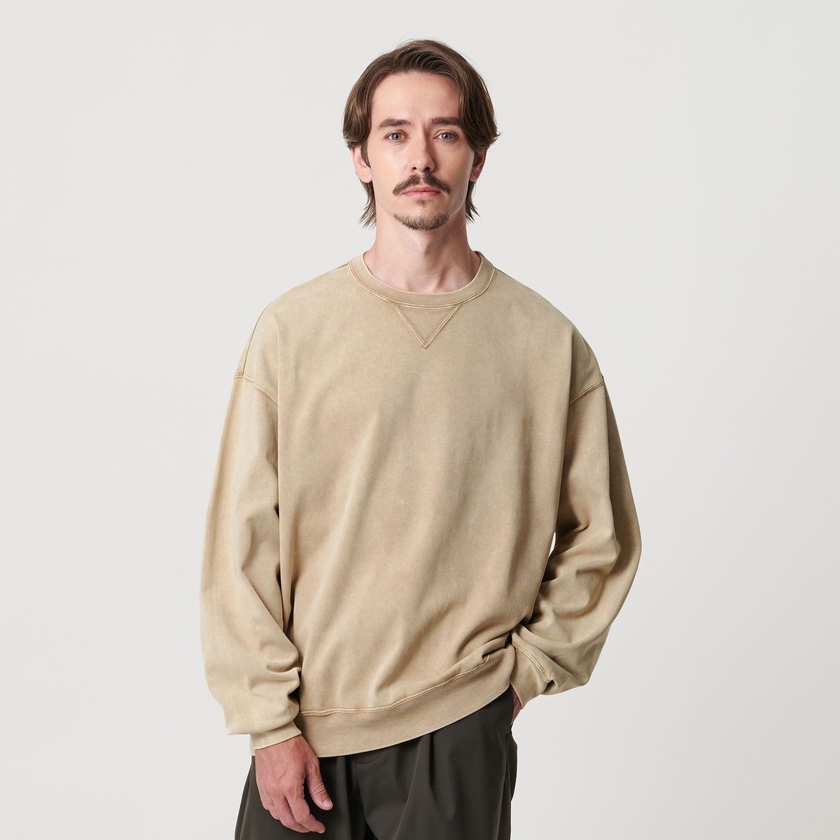 厚手のロンTEE生地をスウェットライクに仕上げ、季節の狭間にも頼れる一枚に。