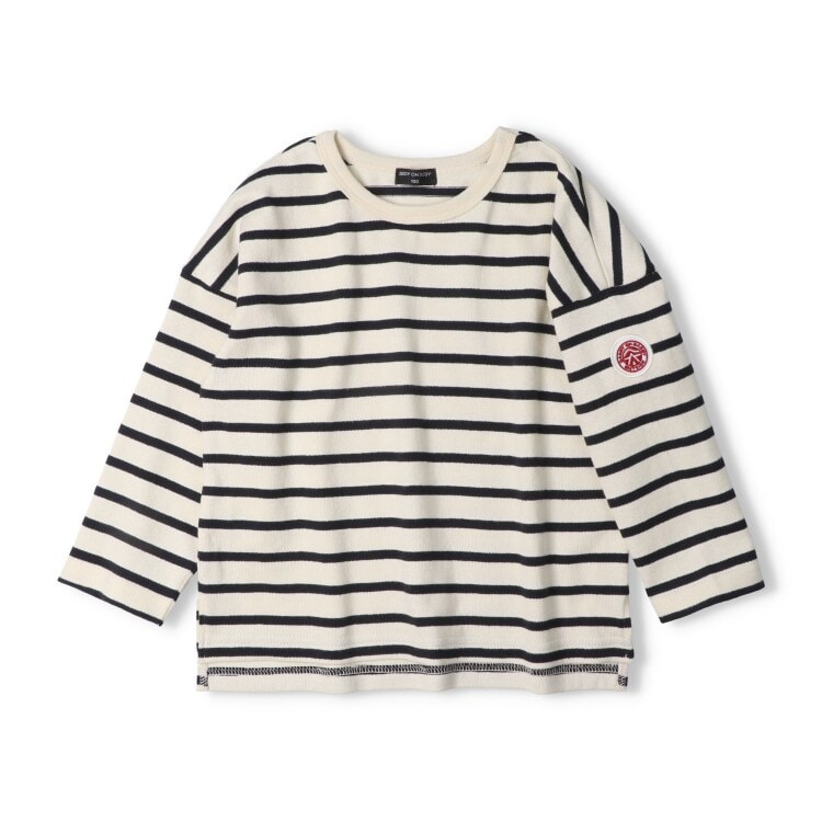シンプルでベーシックなボーダー長袖Tシャツ、ロンT。袖のワッペンがポイント!肩落ちのシルエットもお洒落!同じボーダーでワンピース(V64350)もあるので、兄弟姉妹やお友達と男女でアイテム違いでペア、リンクコーデ、お揃い、おそろいコーディネートも楽しめます!【アイテム】トップス カジュアル お洒落 オシャレ かっこいい かわいい 可愛い 普段着 デイリーウェア お出かけ着 お外着 お外遊び着 子ども服 こども服 男児 男の子 ボーイズ キッズ ベビーサイズ トドラーサイズ 幼稚園 保育園 小学校 通園 通学 小学生 2025年秋冬物新作 丸高衣料 ロングスリーブ 長袖 ジュニアサイズ スクールサイズ 中学生 中学校 高校生 コットン100% 綿100% ダディオダディ 兄妹 姉弟 兄弟 姉妹 お揃い オソロ おそろい お揃いリンク リンクコーデ ペアルック