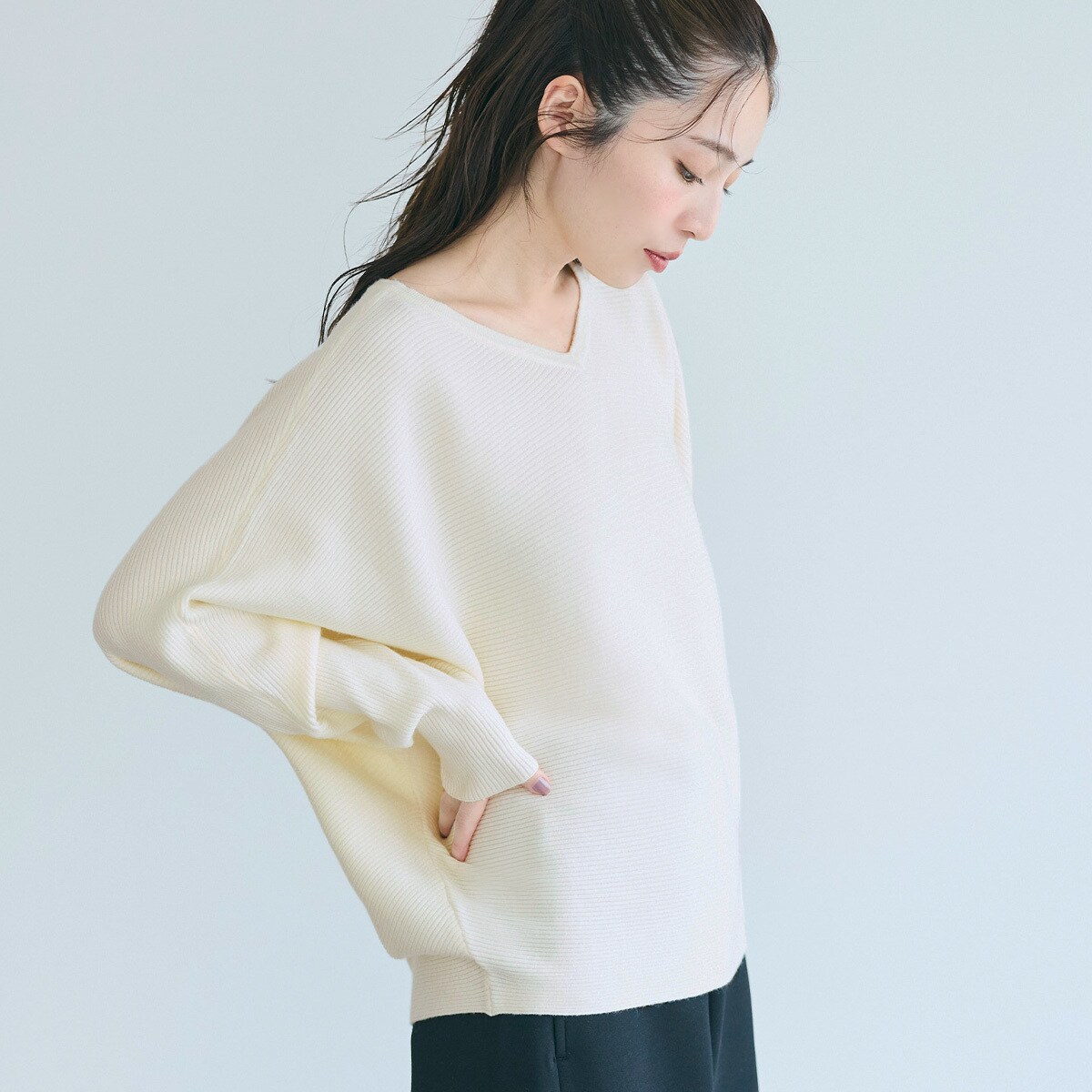 リピ必至!しっとり柔らかな素材が気持ちよいドルマンVネックニット