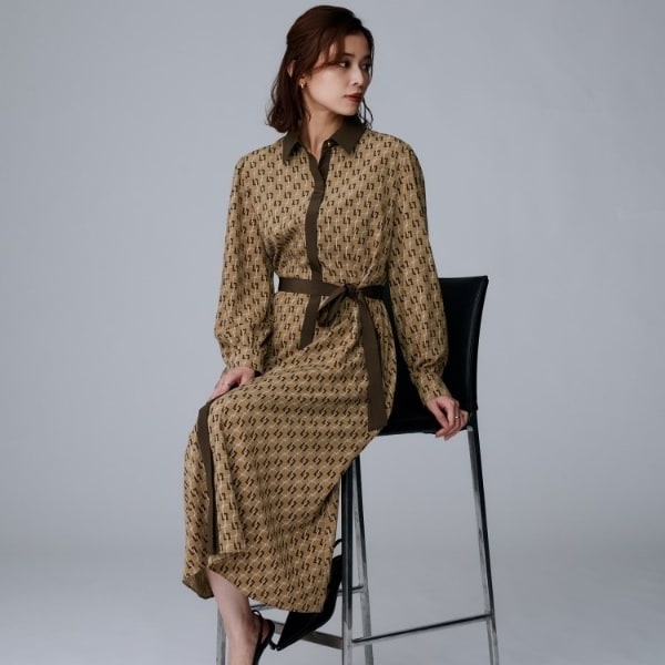 シックでモダンなチェーンプリントが目を惹く通勤ワンピース。