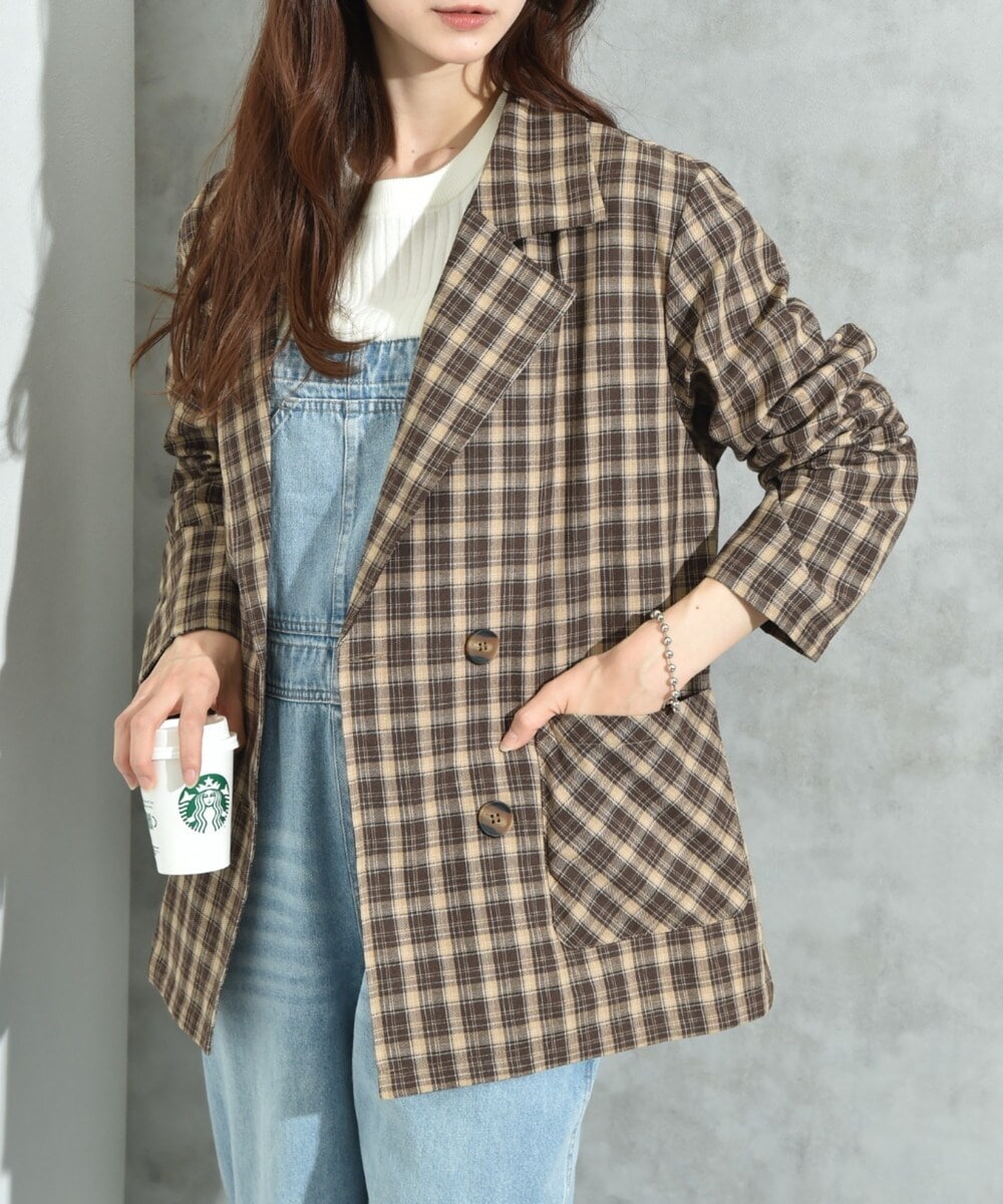 【洗える/オンオフ】チェック柄ダブルジャケット
