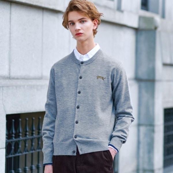 《タイガー刺繍が映えるラウンドカラーニットカーデ》
