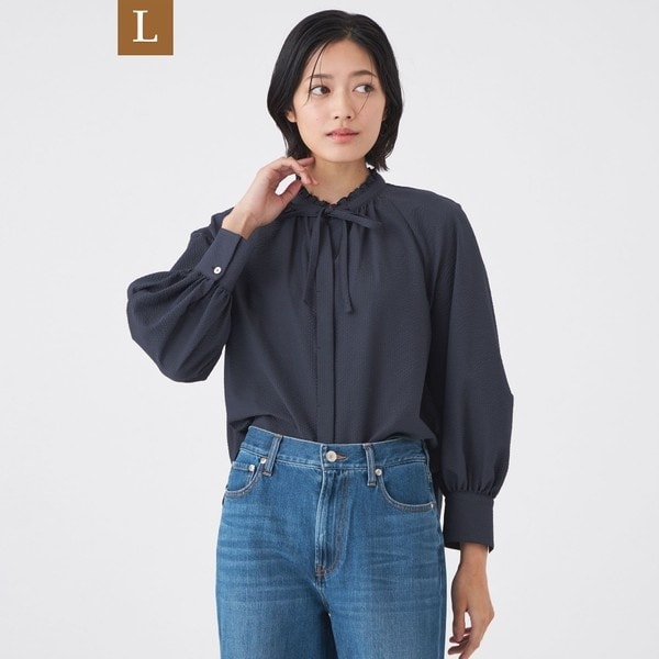 防シワで使い勝手が良く、キーネックがさわやかな印象のブラウスです。