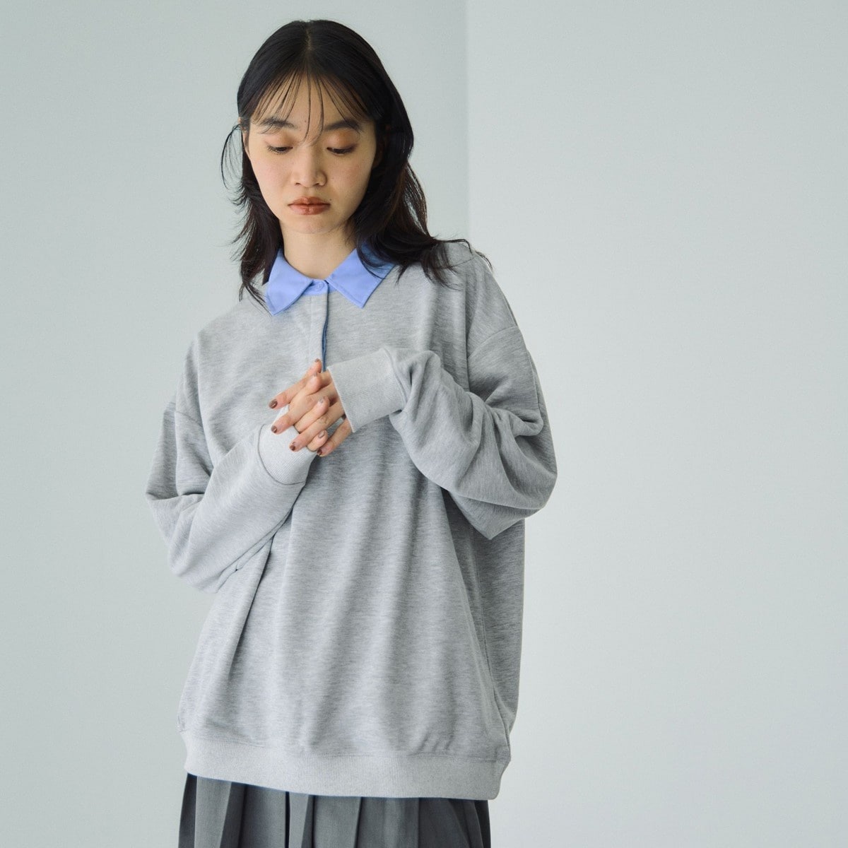 スウェット素材を使用しているので、カジュアルな印象が強くなりやすいアイテムですが、ポロ衿のデザインにすることでスクール風のきちんと感が生まれます。