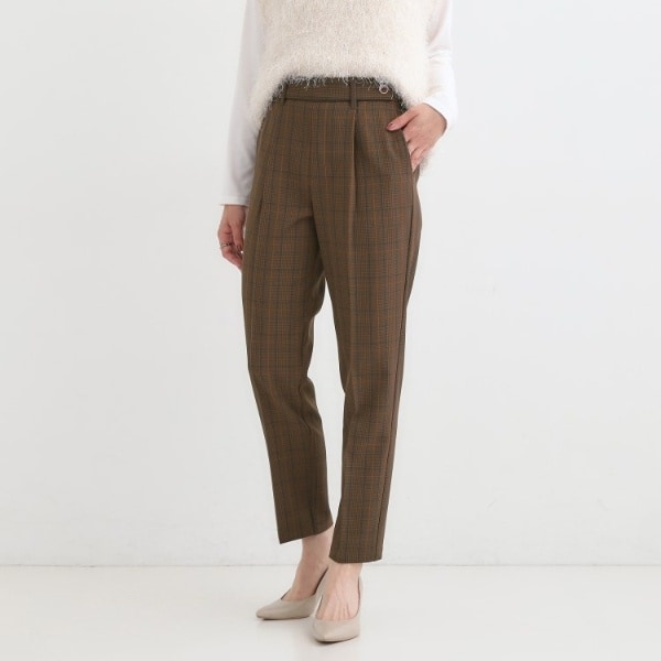 【あったかS-LL】脚のラインをきれいに魅せる チェック柄ワイドパンツ